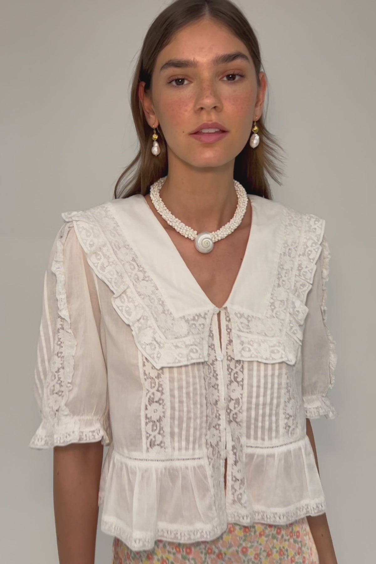 Hang tape measure from the point where you neck meets your shoulder.