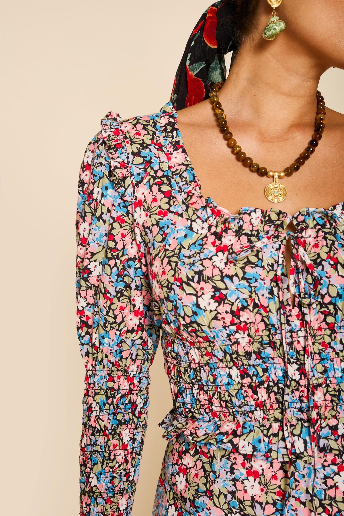 - Shirred cuffs
