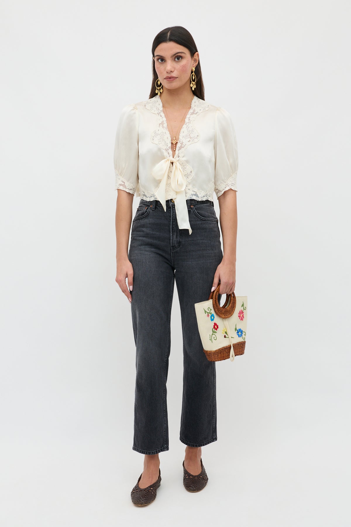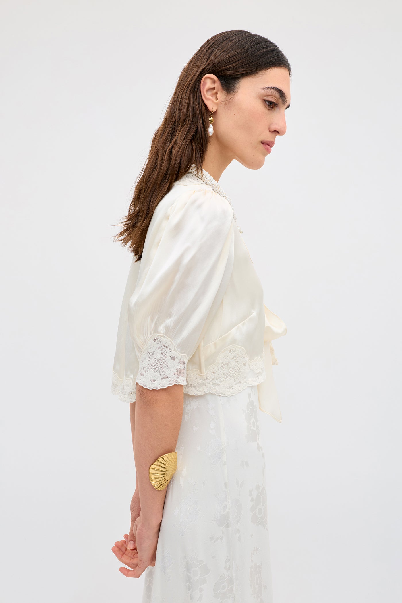 - Champagne silk-satin and lace