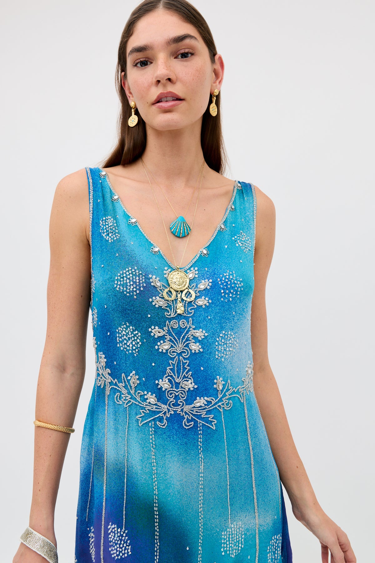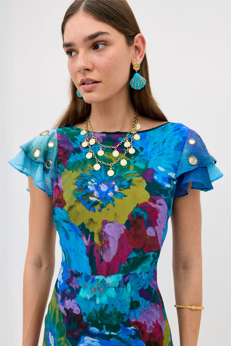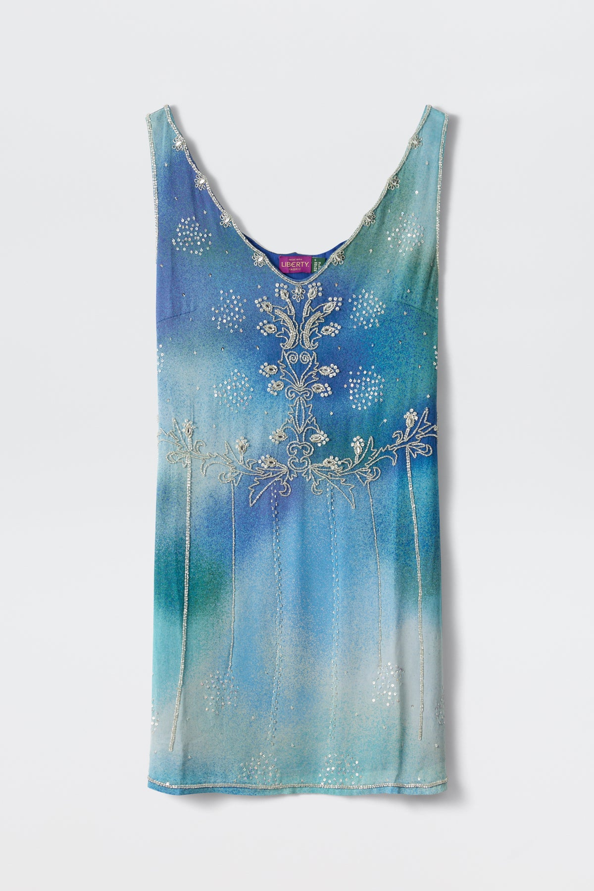 Details Meet the Kaylor Mini Dress. Cut from fluid georgette, so it drapes and never clings. it’s adorned with intricate beading inspired by the delicate chain-stitch artistry of traditional South Asian Aari embroidery. Crafted from Liberty fabric and featuring one of their archival prints, it’s the kind of dress that turns heads—perfect for parties or holidays