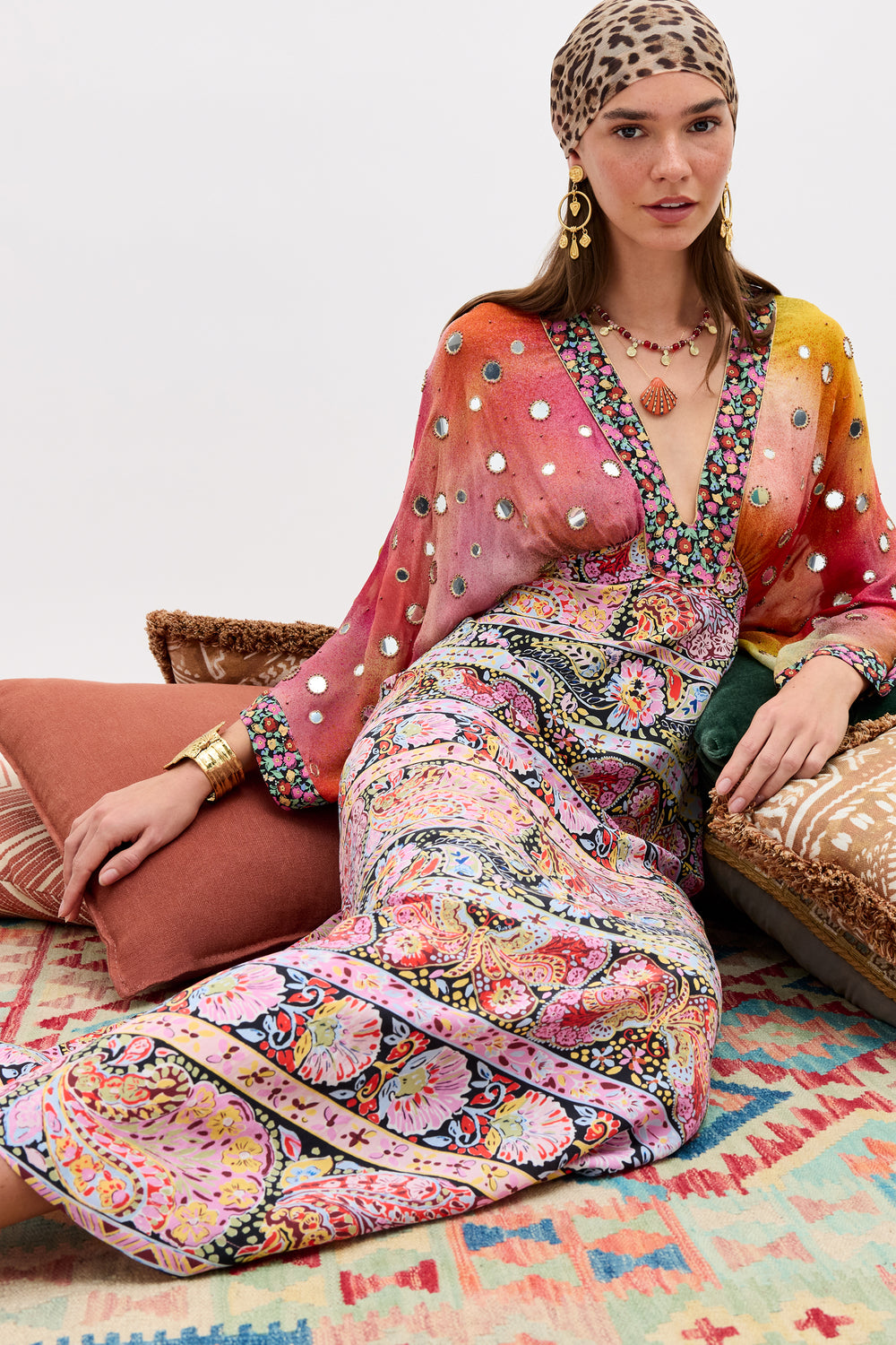 Meet the Kaylor Mini Dress. Cut from fluid georgette, so it drapes and never clings. it’s adorned with intricate beading inspired by the delicate chain-stitch artistry of traditional South Asian Aari embroidery. Crafted from Liberty fabric and featuring one of their archival prints, it’s the kind of dress that turns heads—perfect for parties or holidays