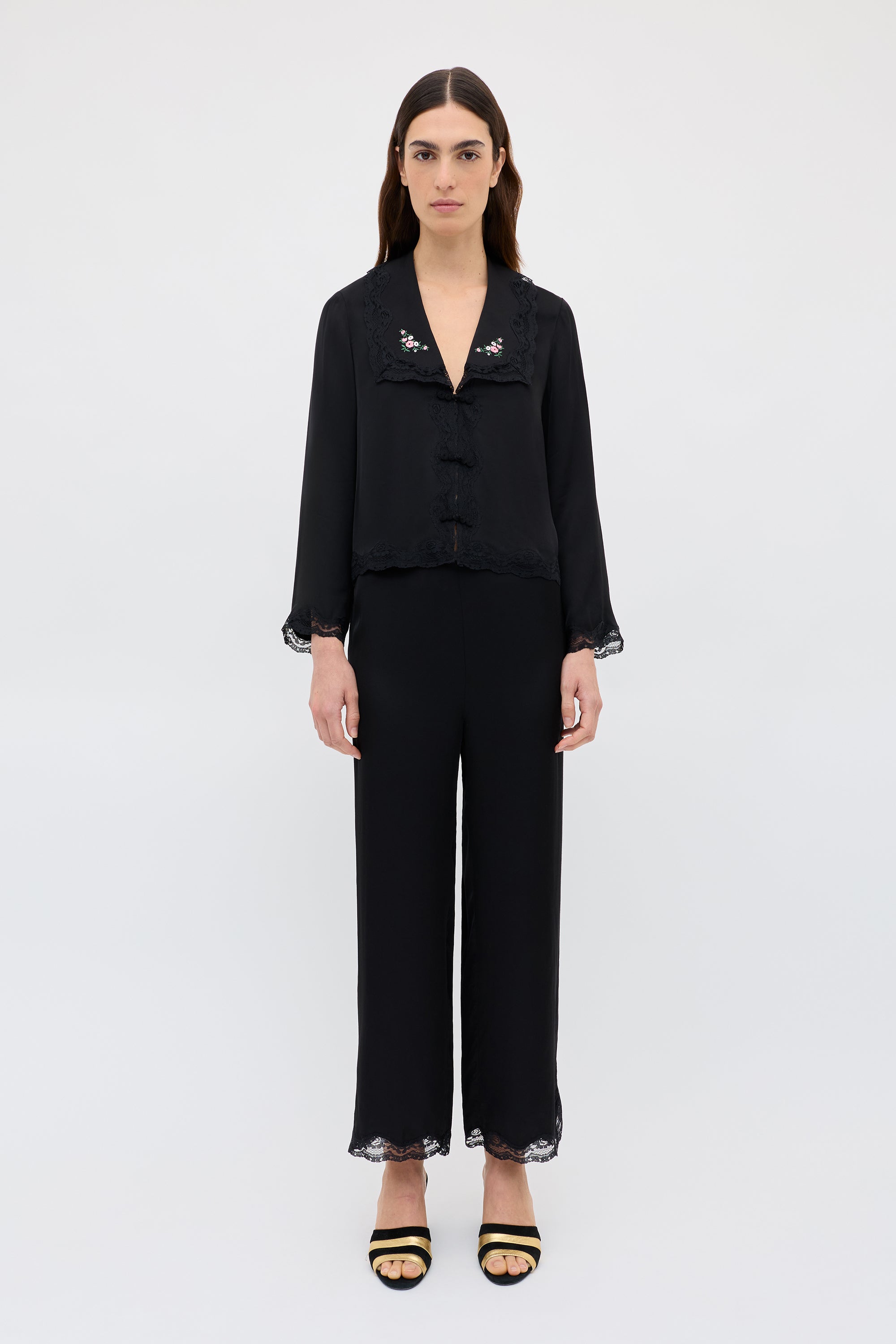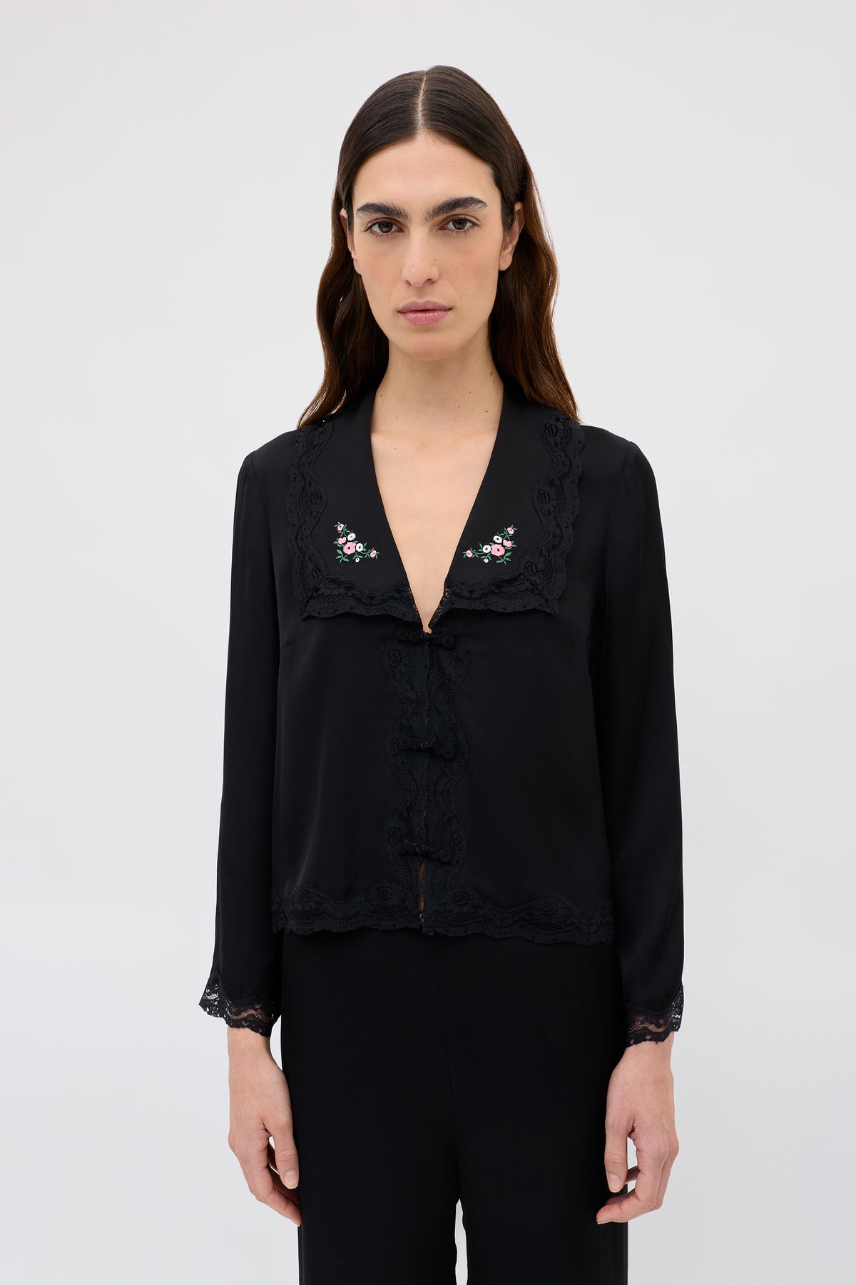 Peonies Embroidery Black