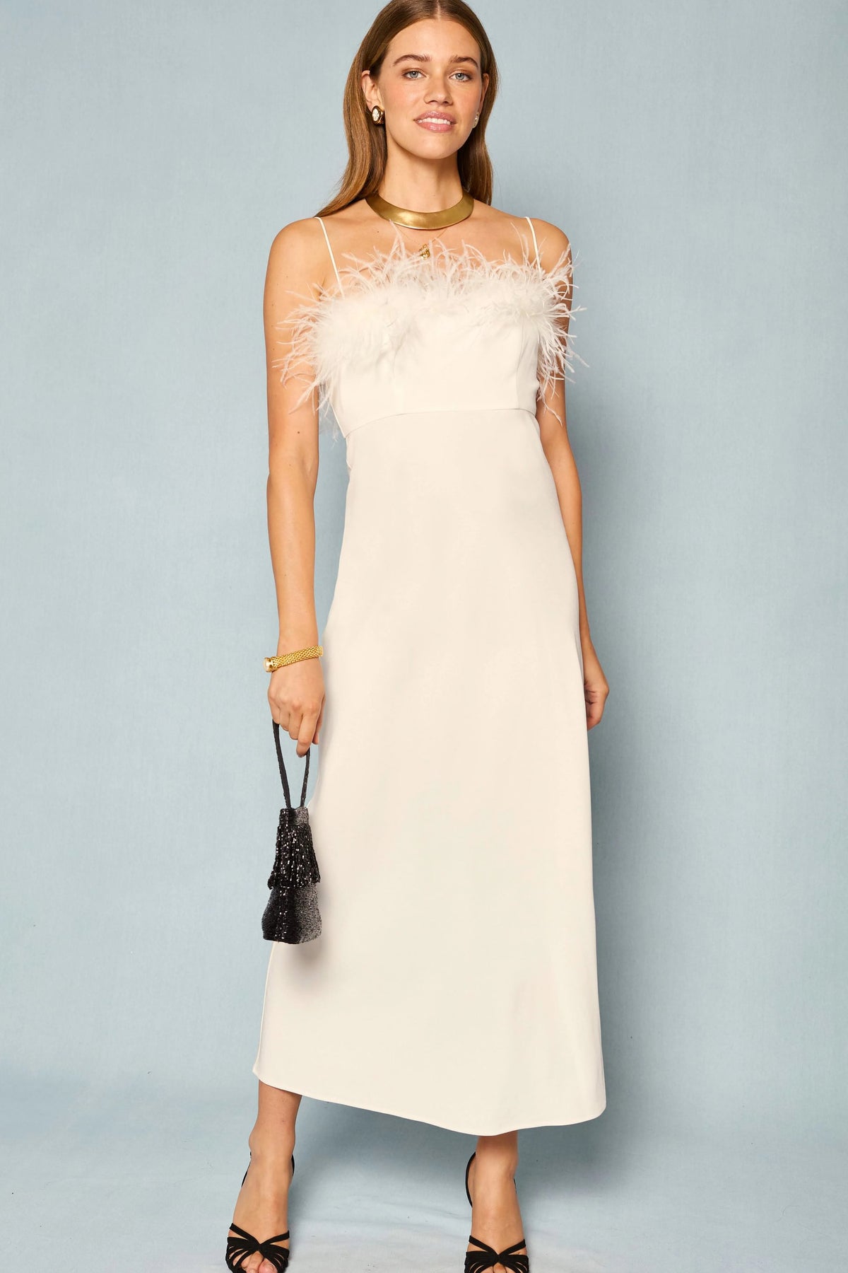 - Ivory crepe de chine and feathers